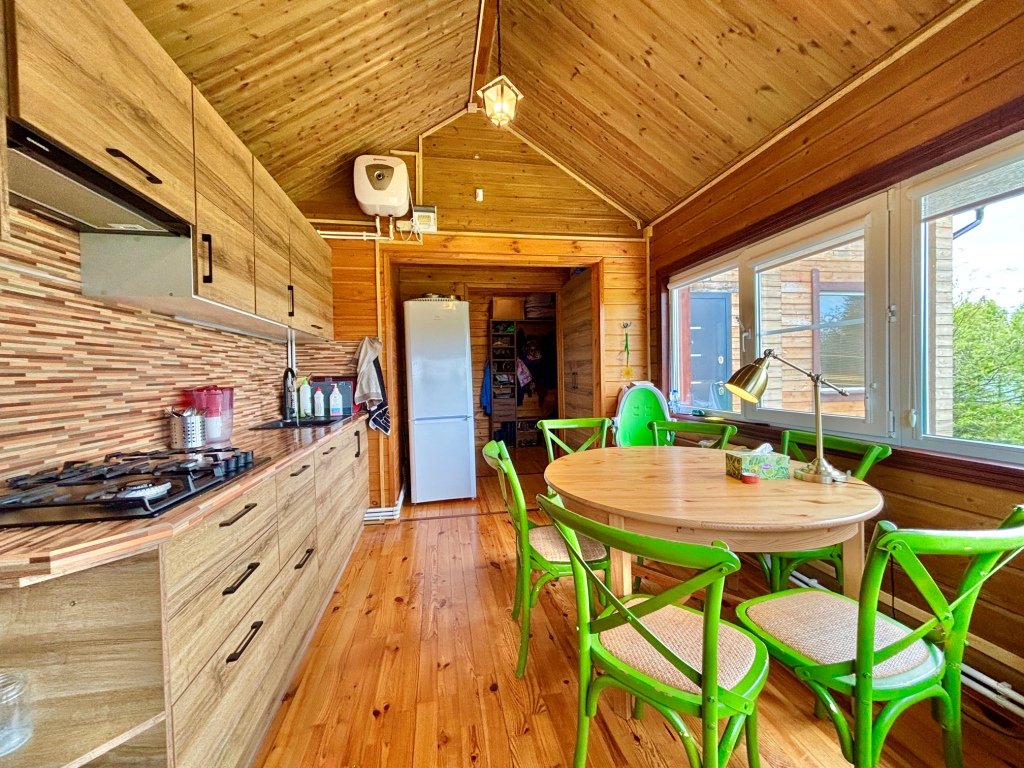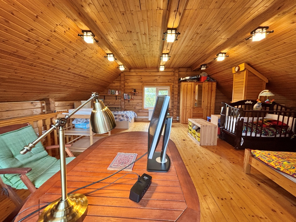 1. Дом Баня из Профилированного бруса, 2009 года постройки, площадью 113 м, 1 этажа 60 кв.м., мансардный этаж с лоджией 53 кв.м: Стены Профилированный брус, Фундамент ленточный фундамент, Подвал полноценный сухой подвал. Полная отделка, состояние идеальное. Баня, камин, горячее водоснабжение и отопление котел BAXI с дистанционным управлением. Интерьер: полностью мебелирован, полноценная кухня, вся бытовая техника. Для детей дополнительное оборудование для безопасности.