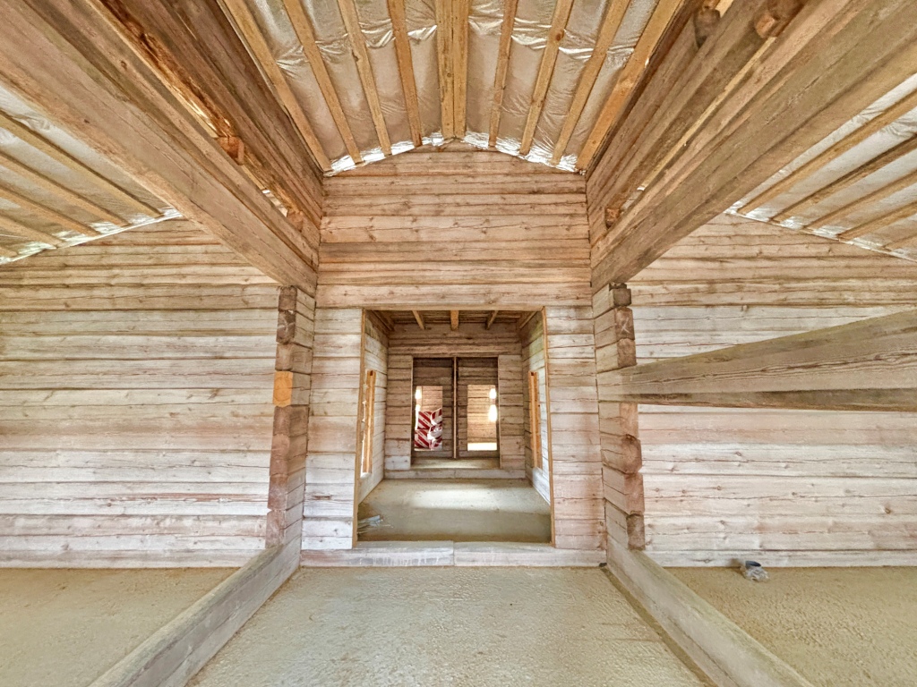 2. Новый дом 2023 года из соснового Лафета, площадью 212 м, 1 этаж 198 м, 2 этаж 75 м: Стены Срублен и собран из северного соснового лафета (диаметр бревен 30 см). Стены отшлифованы, покрыты маслом BIOFA, выполнены внешние оконные проемы. Фундамент монолитная плита (150 мм.), ростверке и забивных сваях (Ж/б С30-20, 150х150х3000 мм 53 шт.). Выполнены закладки инженерных сетей. Технический этаж. Интерьер полностью подведен под отделку, бревно прошло усадку. Готов к внутренней отделке. Крыша пирог кровли сделан максимально качественно с использованием мягкой кровли Katepal. Вся проектная документация!.